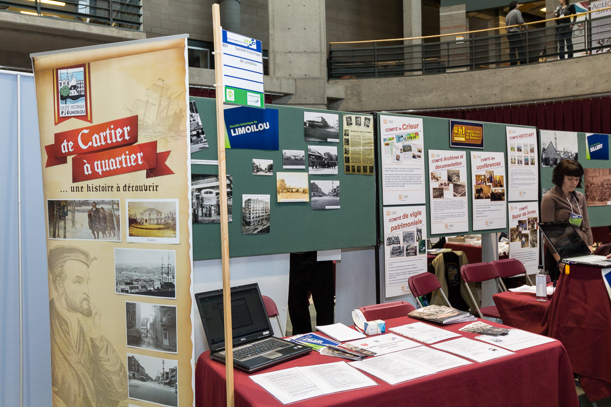 - Stands des 12 sociétés d’histoire de la ville de Québec.